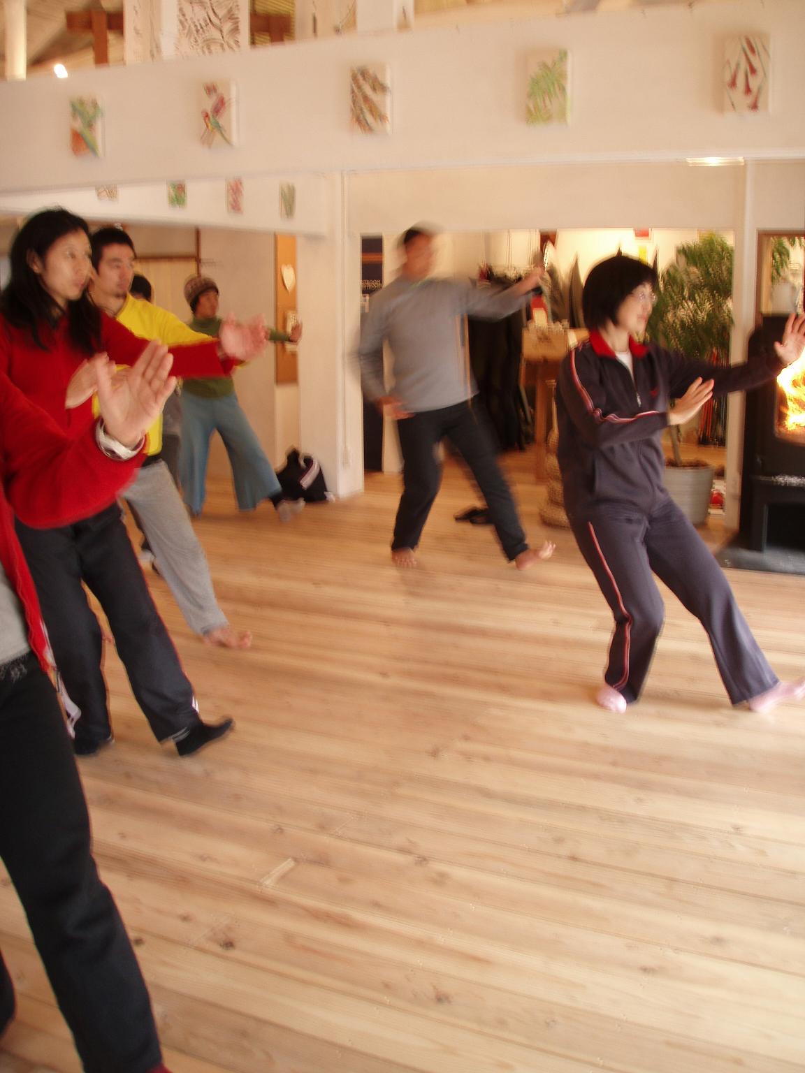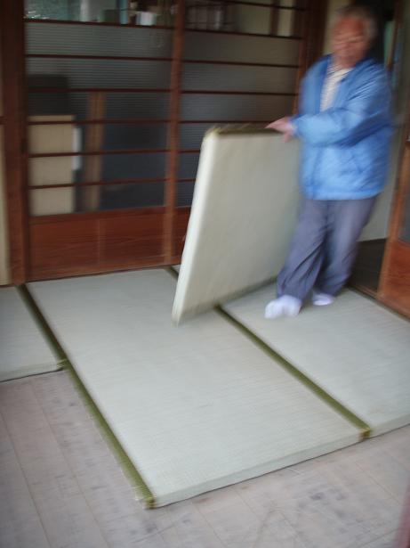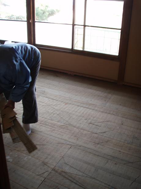 職人の方が、手際よく運びこみ、床にはめていきます。