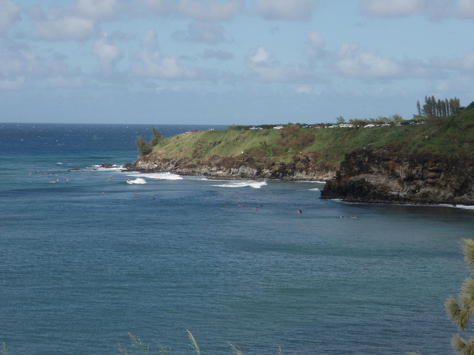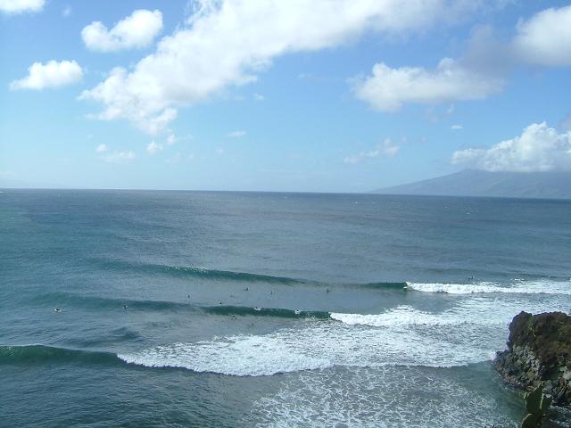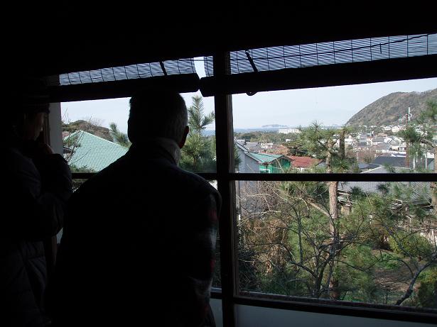 窓の外に並ぶ防風松は、上のほうが切られてる。
