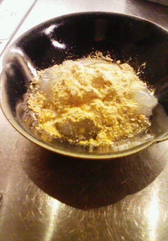 左ふたつは、主に家畜の飼料や肥料に、右のふたつは、団子やせんべいに使われる。