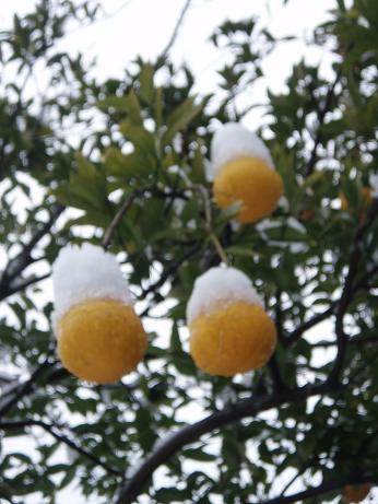 雪帽子をかぶったみかんたちに、思わず顔がほころびます。
