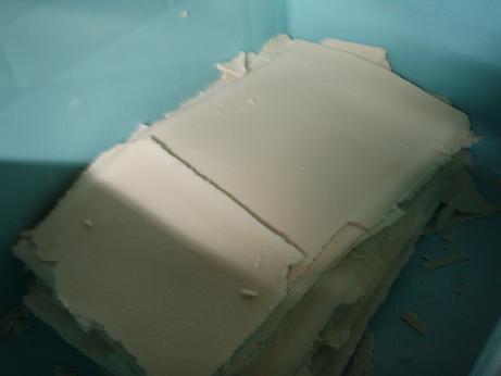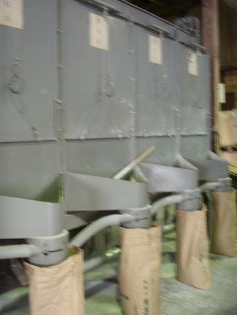 精米機の横では、一番外側の茶色っぽいぬかから、真っ白なぬかまで、