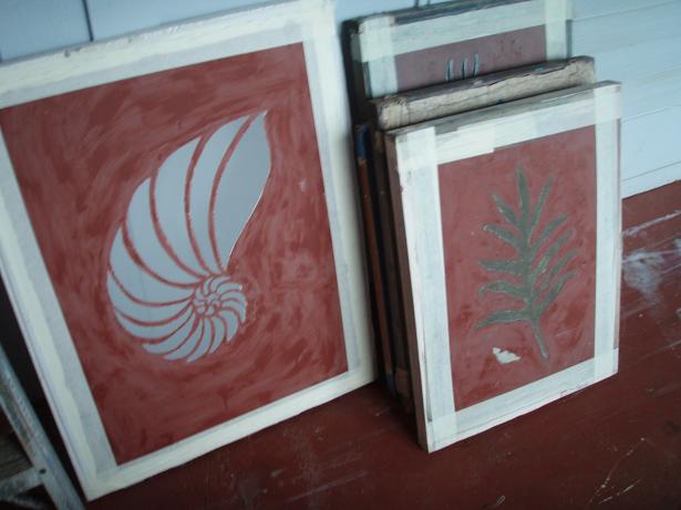 キャンバス地に何度も洗いをかけて、アーティストが描いたハワイの植物の絵を