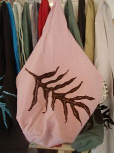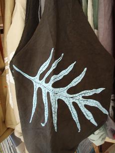 シルクスクリーンで、プリントしたギャザリングバッグ。