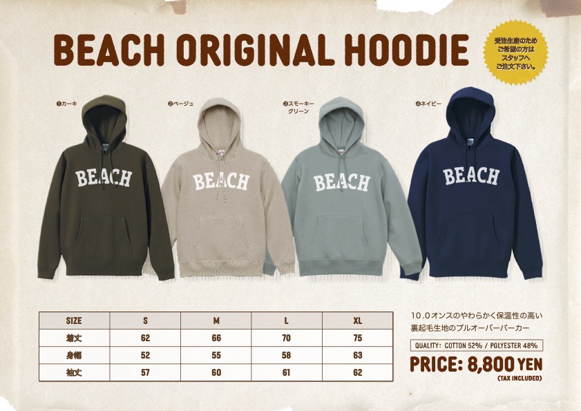 BEACH葉山オリジナルのスウェットパーカーが完成しました。
