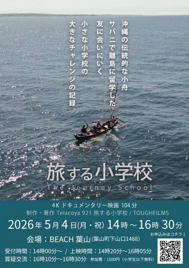 神奈川県葉山町にある、Telacoya旅する小学校。 旅する小学校の子どもたちが、沖縄の離島に留学した仲間にサバニで会いに行くと決めてから、約半年にわたる挑戦を記録したドキュメンタリーです。